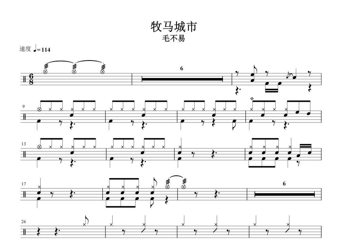 毛不易《牧马城市》鼓谱 - 架子鼓谱