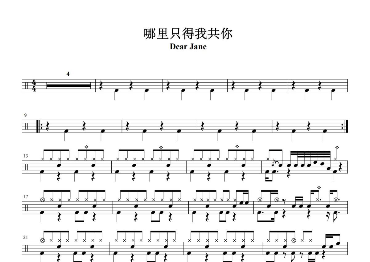 Dear Jane《哪里只得我共你》鼓谱 - 架子鼓谱