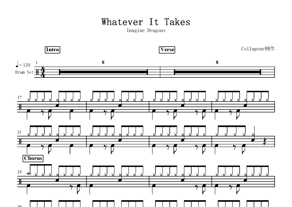 Imagine Dragons《Whatever It Takes》鼓谱 - 架子鼓谱