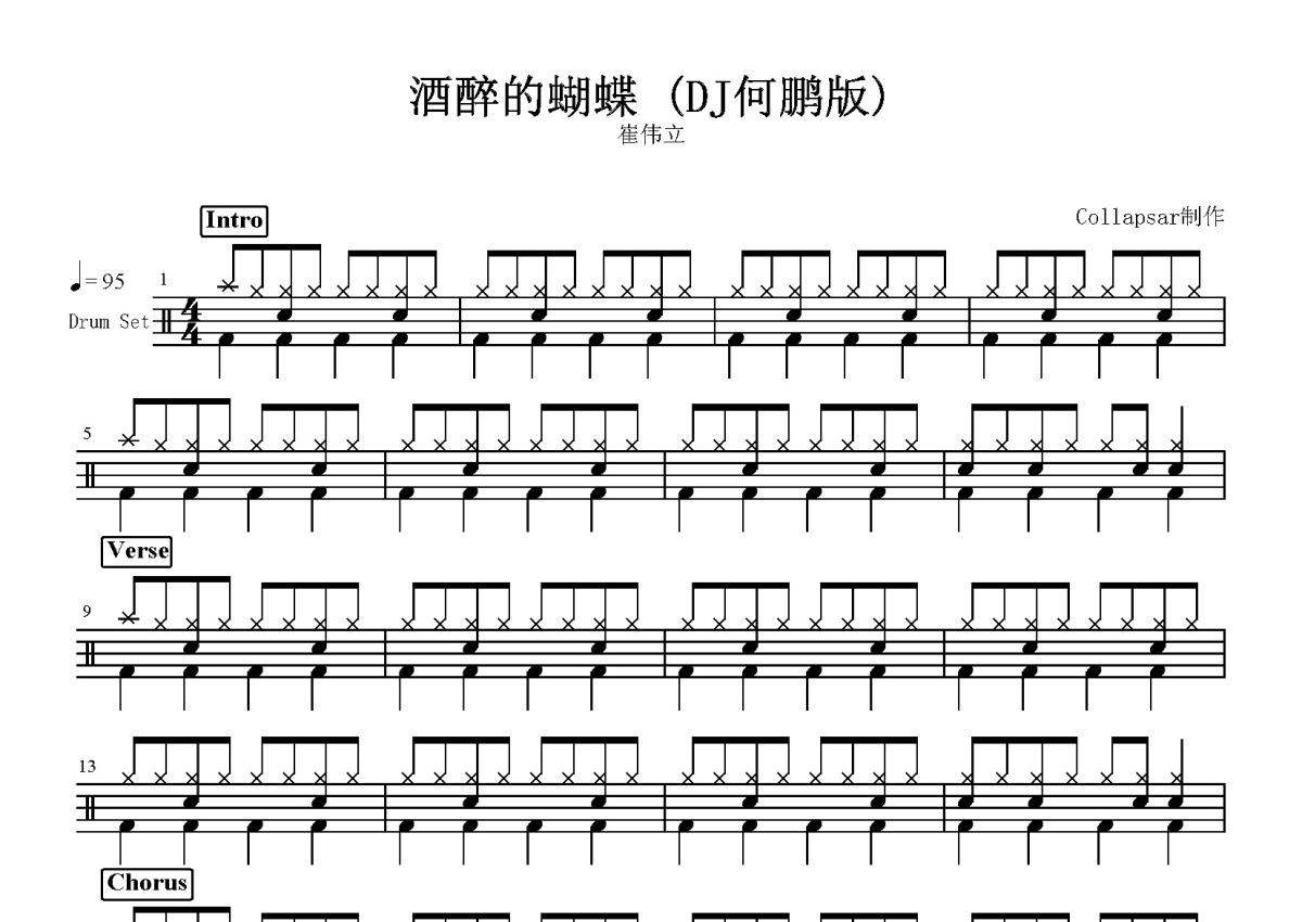 崔立伟《酒醉的蝴蝶》鼓谱 - 架子鼓谱