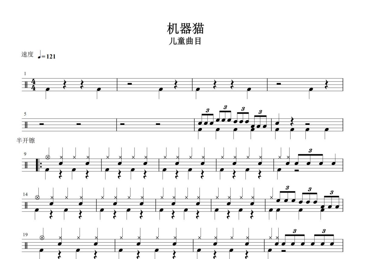儿童曲目《机器猫》鼓谱 - 架子鼓谱