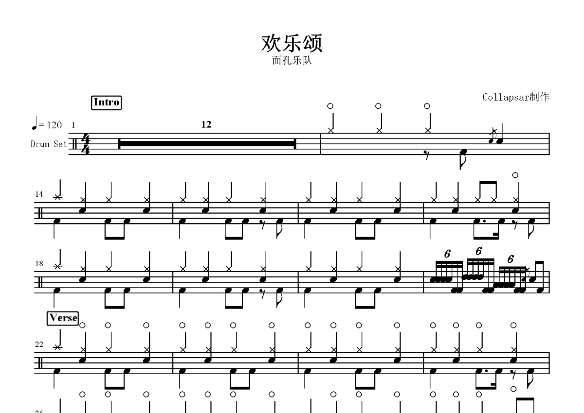 面孔乐队《欢乐颂》鼓谱 - 架子鼓谱