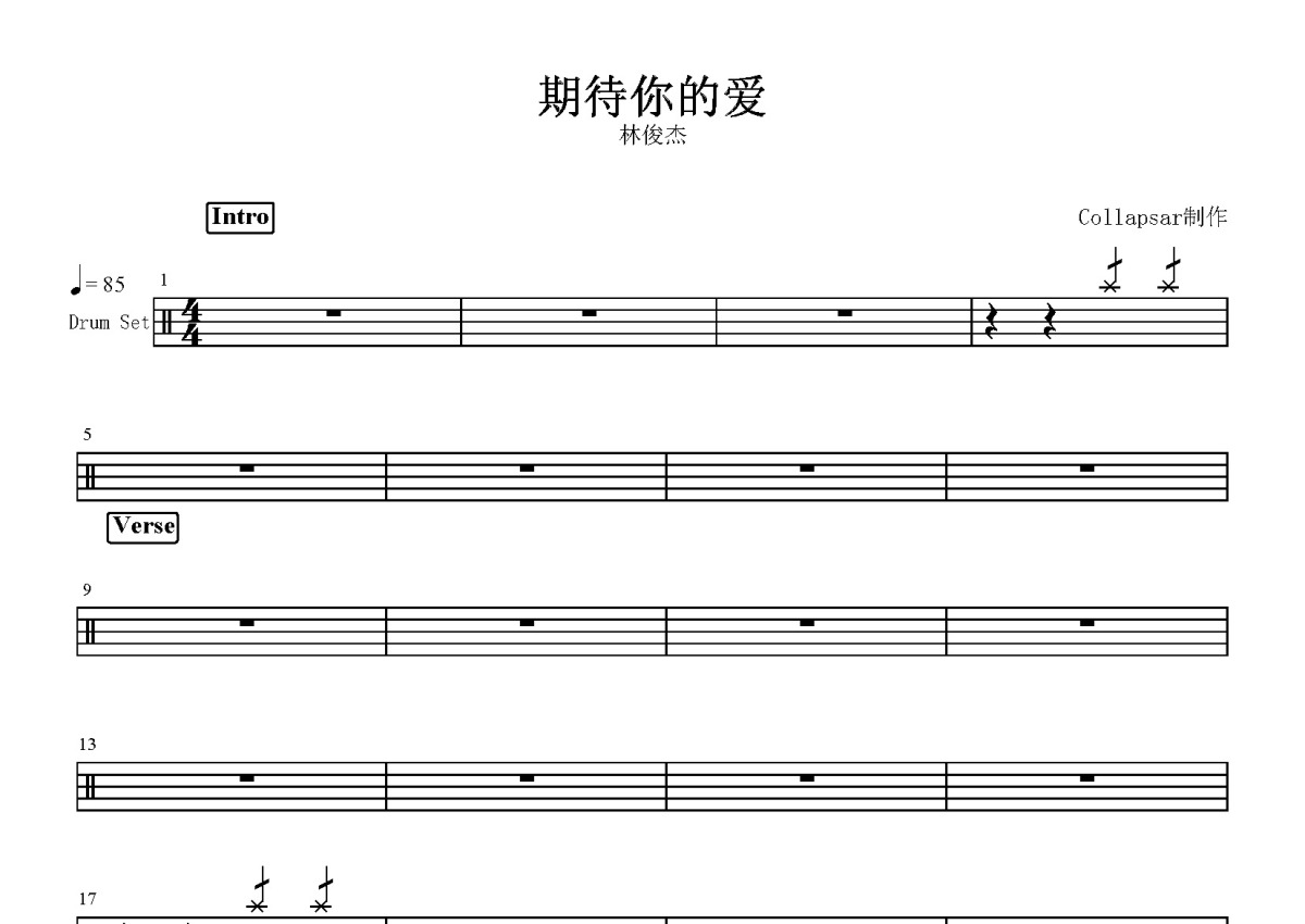 林俊杰《期待你的爱》鼓谱 - 架子鼓谱