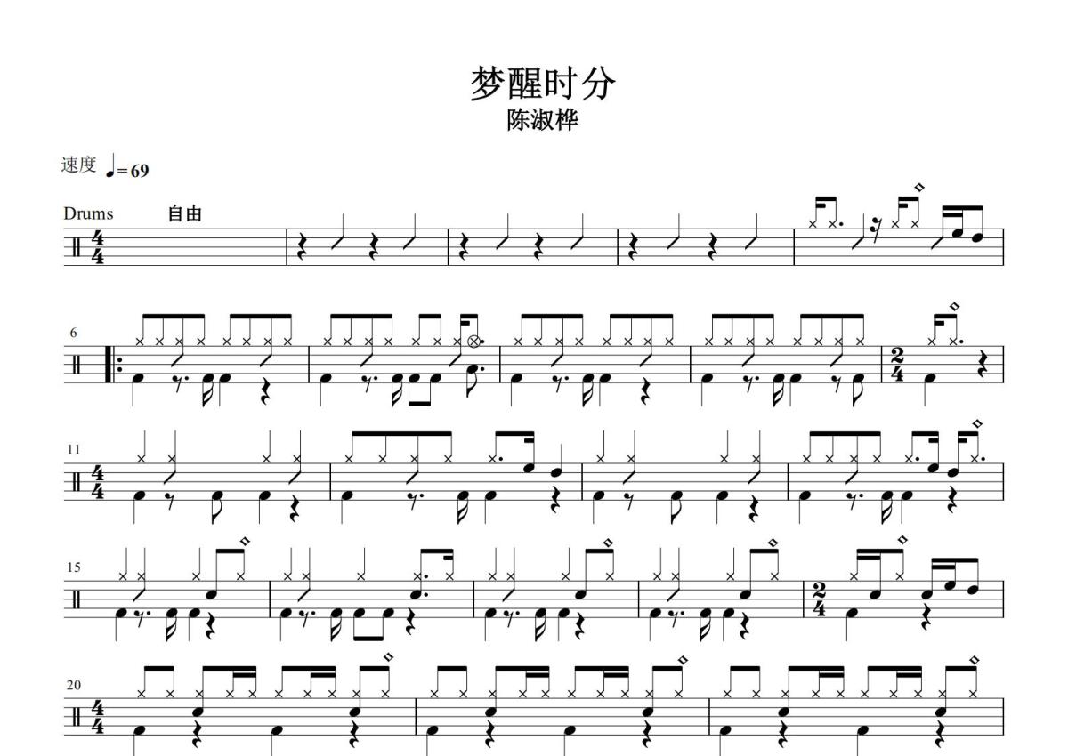 《梦醒时分》是陈淑桦演唱的一首歌曲,这份鼓谱共有两张高清图谱,图谱由 @打鼓谱 编配上传,图谱使用五线谱编配,使用这份梦醒时分架子鼓谱,你将能够轻松地敲打出这首陈淑桦的梦醒时分,快来尝试吧。《梦醒时分》是一首由李宗盛作词作曲,陈淑桦演唱的经典国语流行歌曲,也是台湾唱片工业史上首张销量破百万专辑《跟你说听你说》的主打歌曲,被庾澄庆,伍佰,林忆莲,王菲,梁静茹,周华健,迪克牛仔,高胜美等歌手翻唱过 。