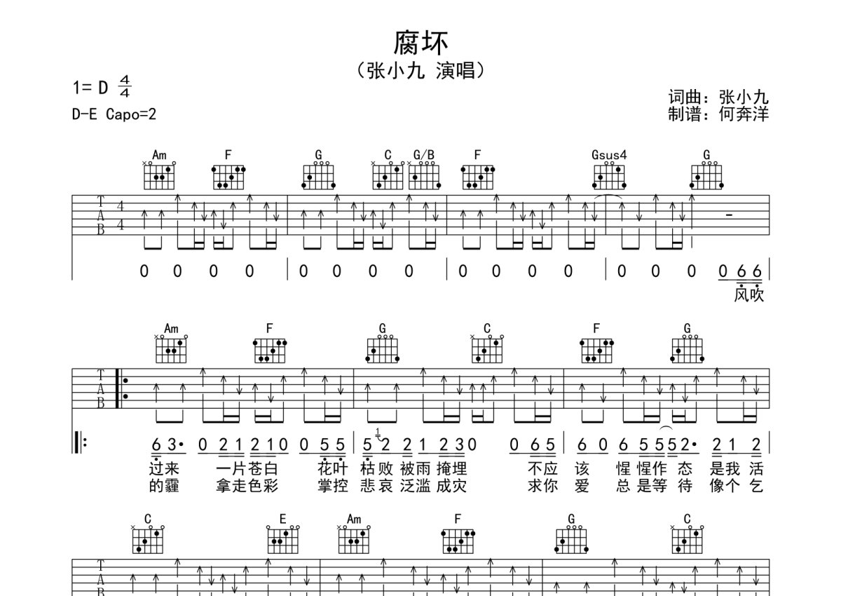 张小九《腐坏》吉他谱 - C调弹唱六线谱