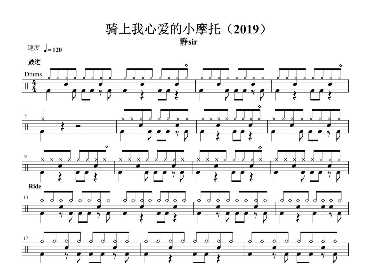 静sir《骑上我心爱的小摩托》鼓谱 - 架子鼓谱