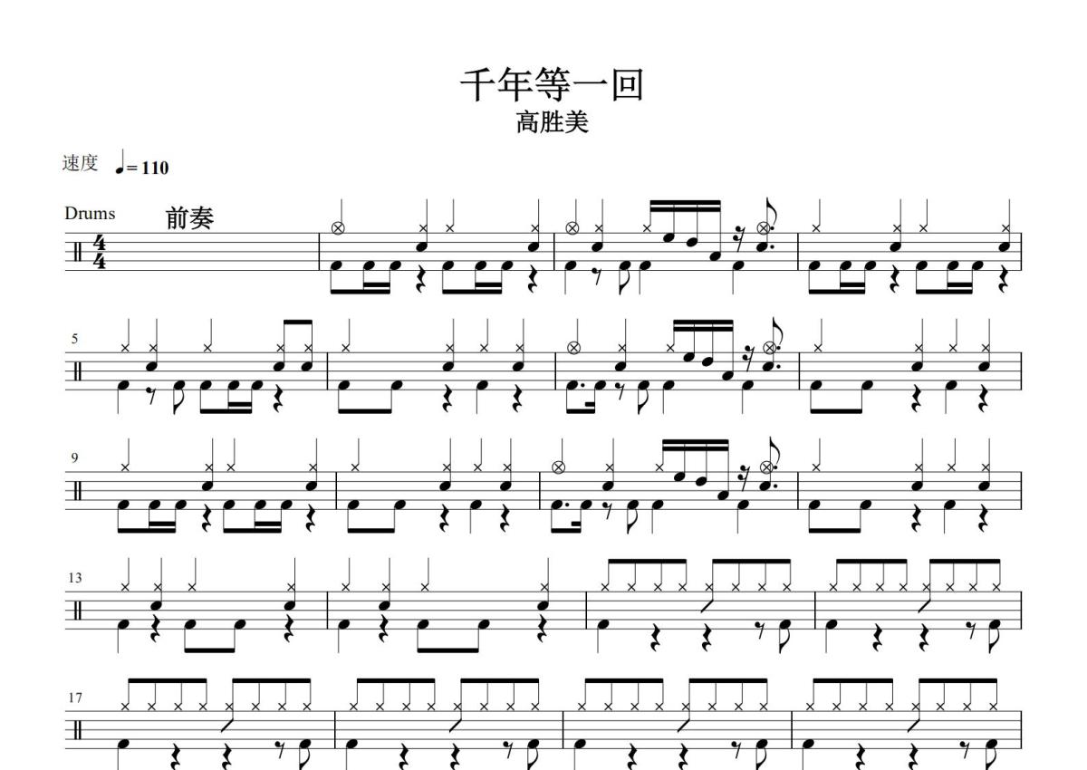高胜美《千年等一回》鼓谱 - 架子鼓谱