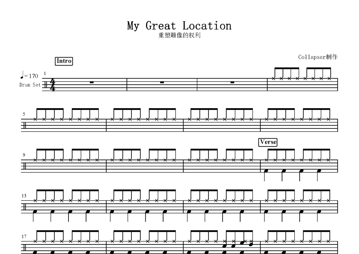 重塑雕像的权利《My Great Location》鼓谱 - 架子鼓谱