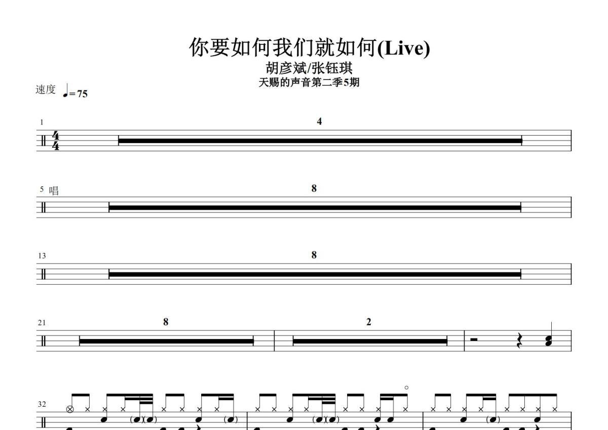 胡彦斌/张钰琪《你要如何我们就如何》鼓谱 - 架子鼓谱
