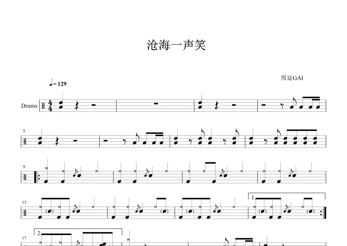周延gai《沧海一声笑》鼓谱 - 架子鼓谱