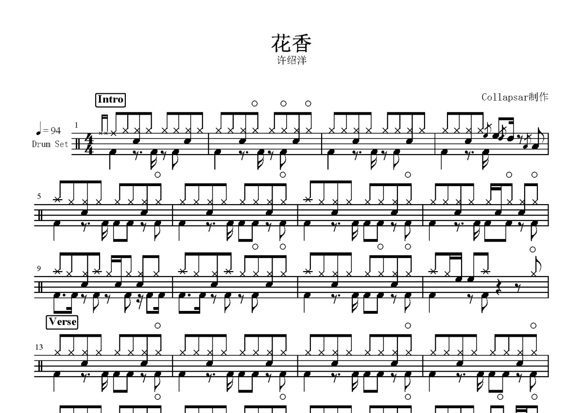 许绍洋《花香》鼓谱 - 架子鼓谱