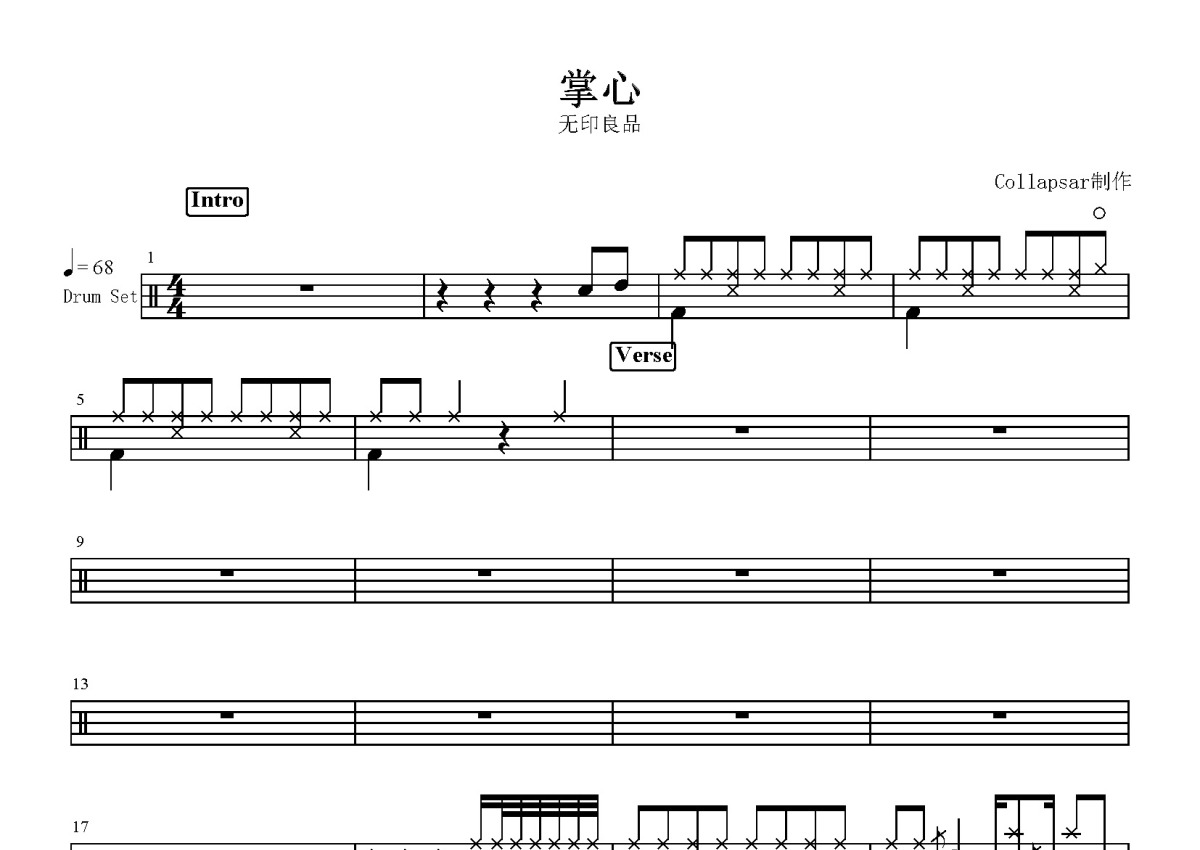 无印良品《掌心》鼓谱 - 架子鼓谱