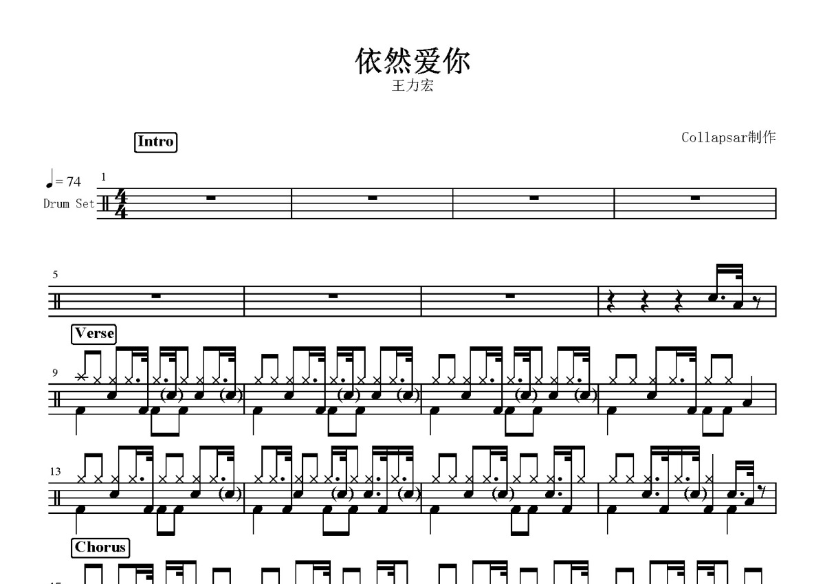 王力宏《依然爱你》鼓谱 - 架子鼓谱