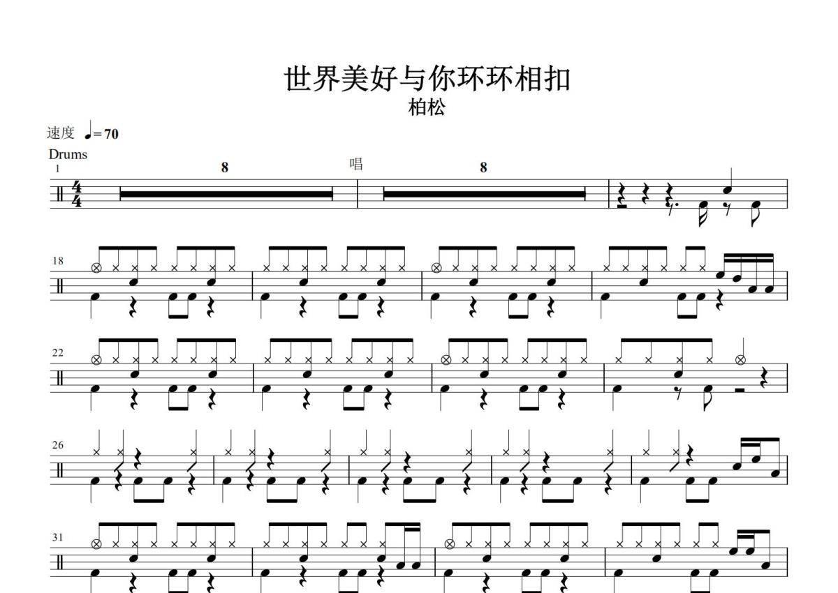 柏松《世界美好与你环环相扣》鼓谱 - 架子鼓谱
