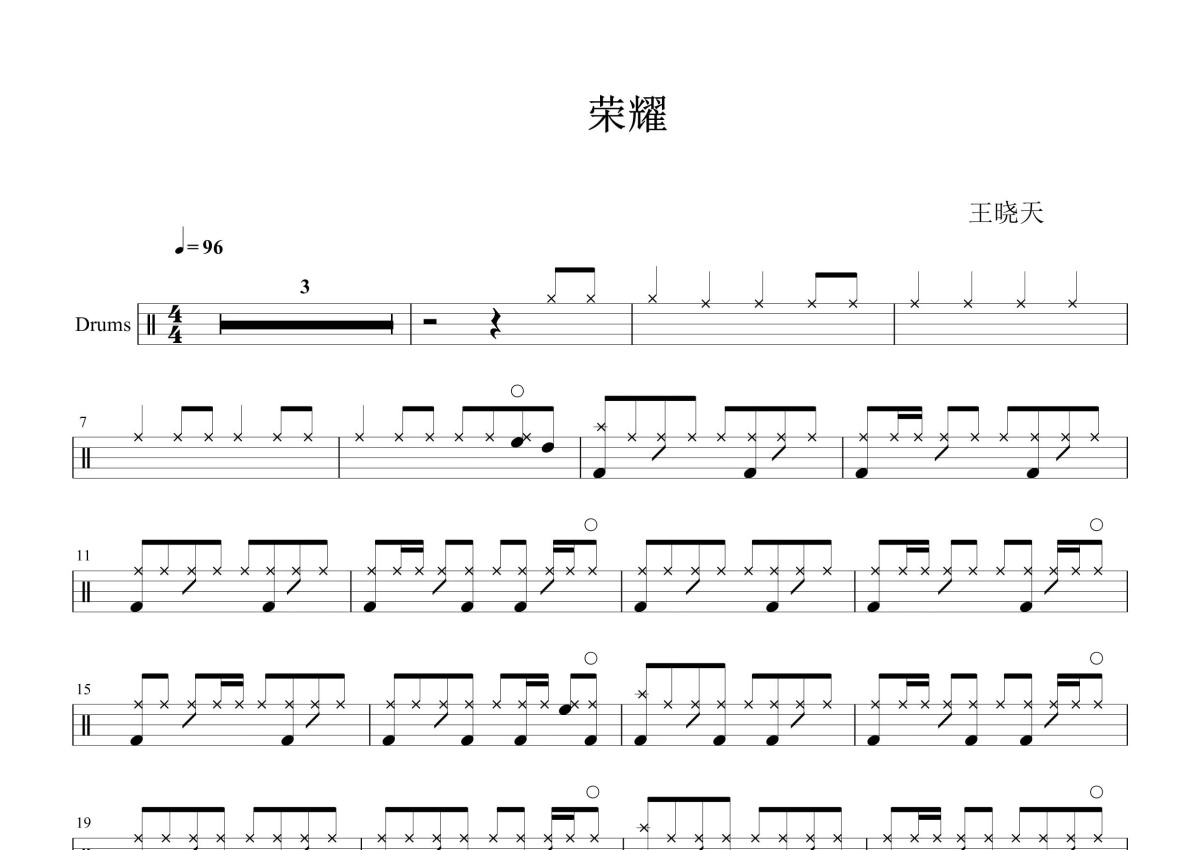 王晓天《荣耀》鼓谱 - 架子鼓谱