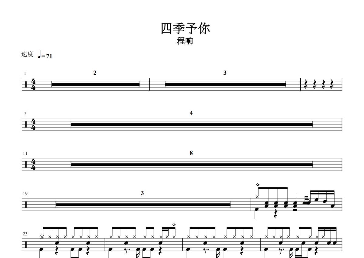 程响《四季予你》鼓谱 - 架子鼓谱