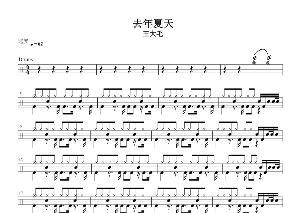 王大毛《去年夏天》鼓谱 - 架子鼓谱