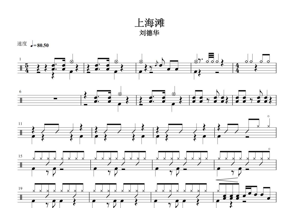 《上海滩》是刘德华演唱的一首歌曲,这份鼓谱共有两张高清图谱,图谱由 @打鼓谱 编配上传,图谱使用五线谱编配,使用这份上海滩架子鼓谱,你将能够轻松地敲打出这首刘德华的上海滩,快来尝试吧。刘德华版本。