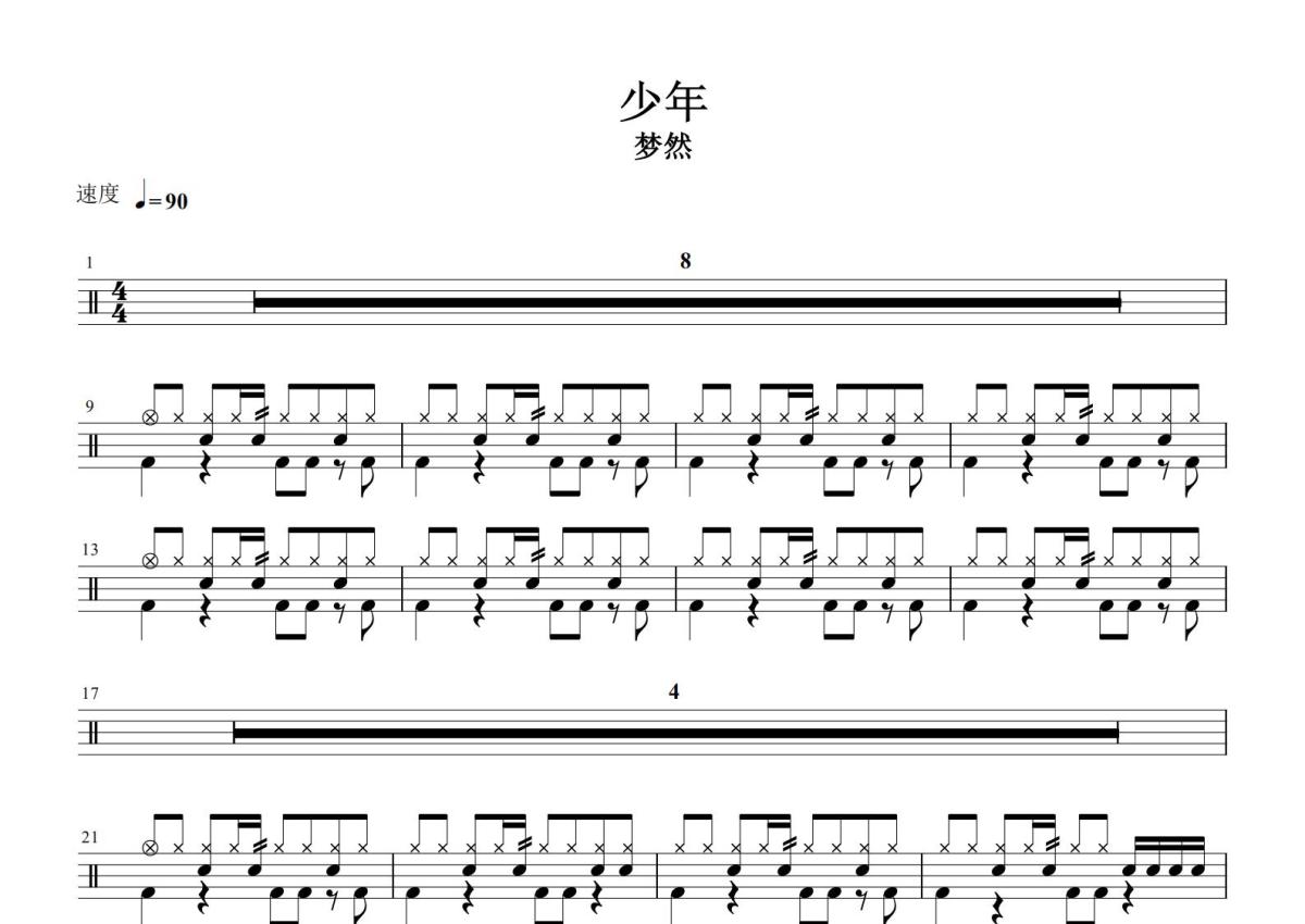 《少年》是梦然演唱的一首歌曲,这份鼓谱共有三张高清图谱,图谱由 @打鼓谱 编配上传,图谱使用五线谱编配,使用这份少年架子鼓谱,你将能够轻松地敲打出这首梦然的少年,快来尝试吧。《少年》是由梦然作词、作曲并演唱的一首歌曲,该曲于2019年11月14日以单曲的形式发布 。 2020年7月18日,该曲获得全球中文音乐榜上榜周冠军 。