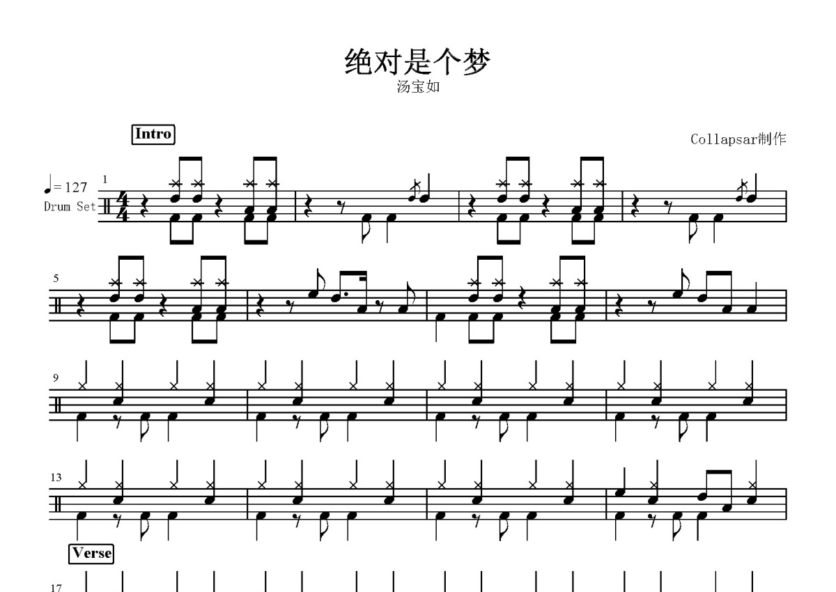 汤宝如《绝对是个梦》鼓谱 - 架子鼓谱
