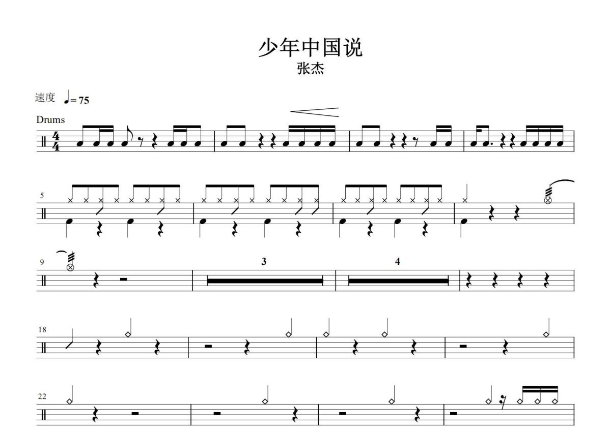 张杰《少年中国说》鼓谱 - 架子鼓谱