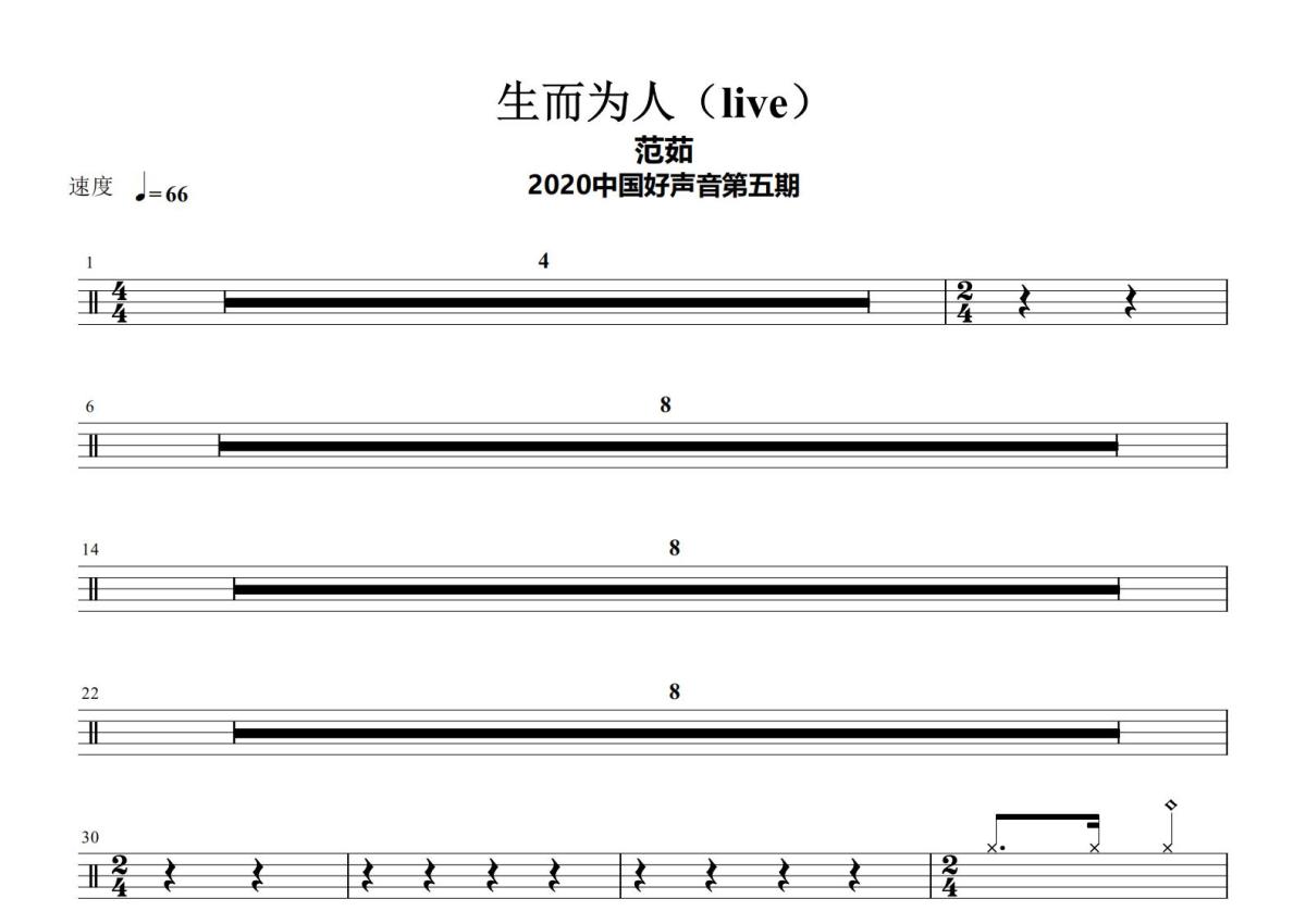 范茹《生而为人》鼓谱 - 架子鼓谱