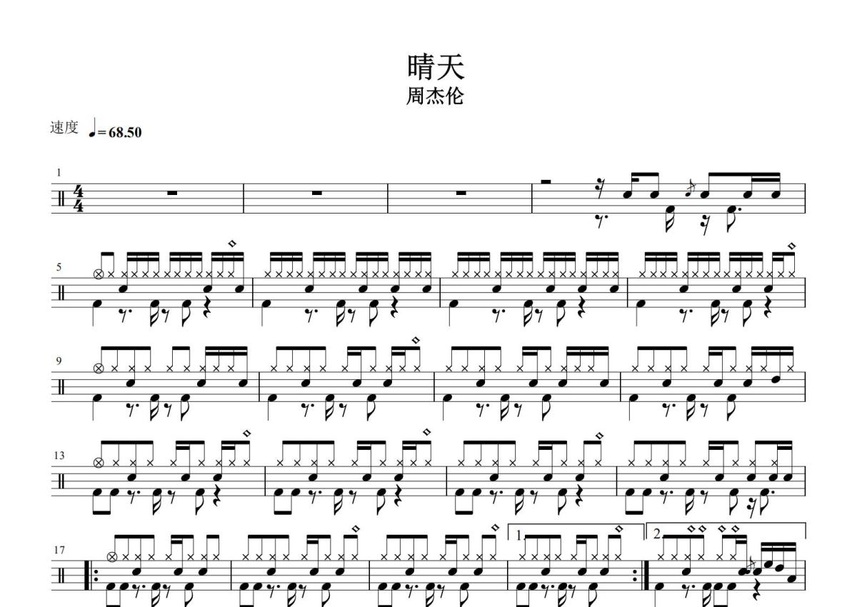 周杰伦《晴天》鼓谱 - 架子鼓谱