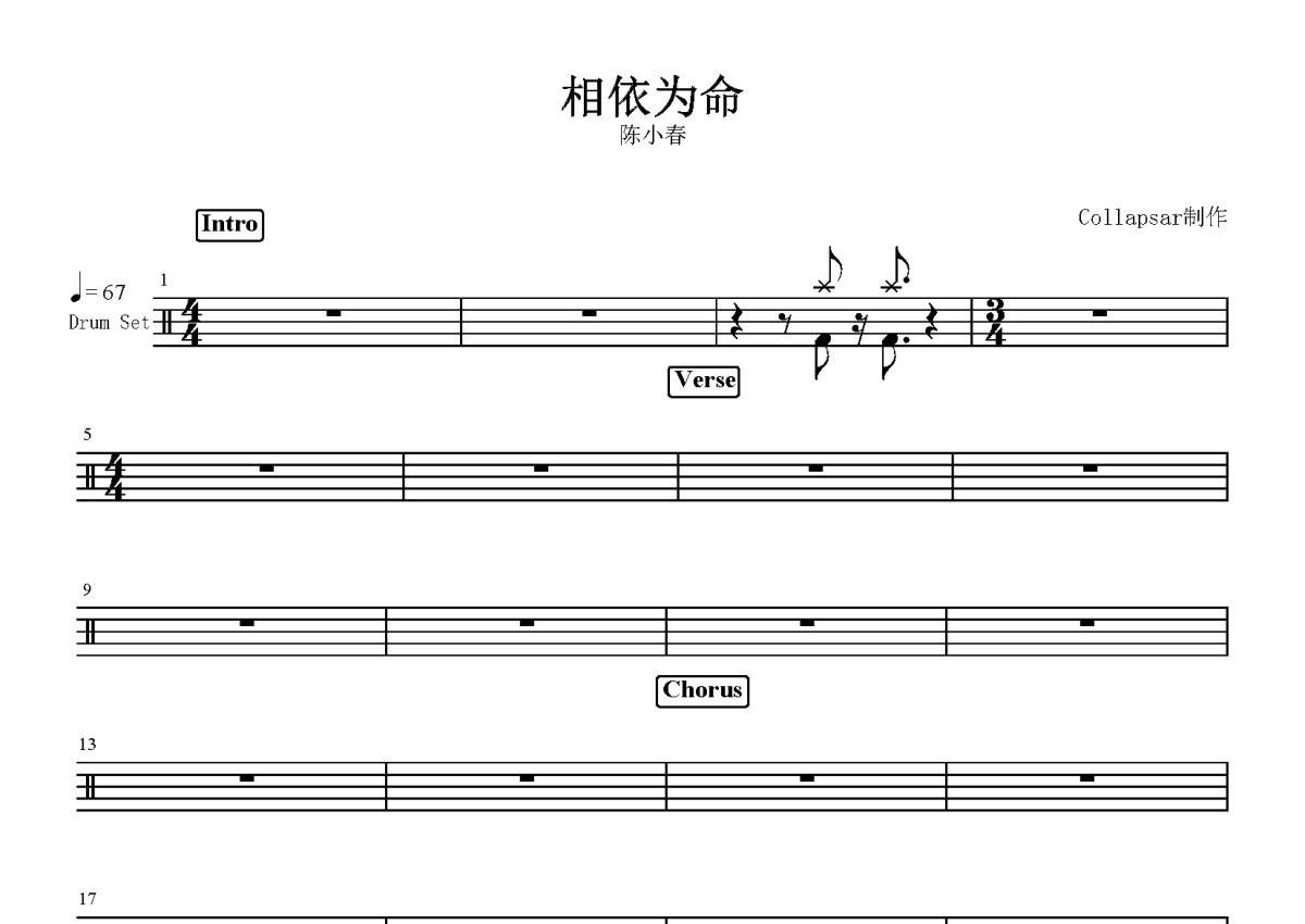 陈小春《相依为命》鼓谱 - 架子鼓谱