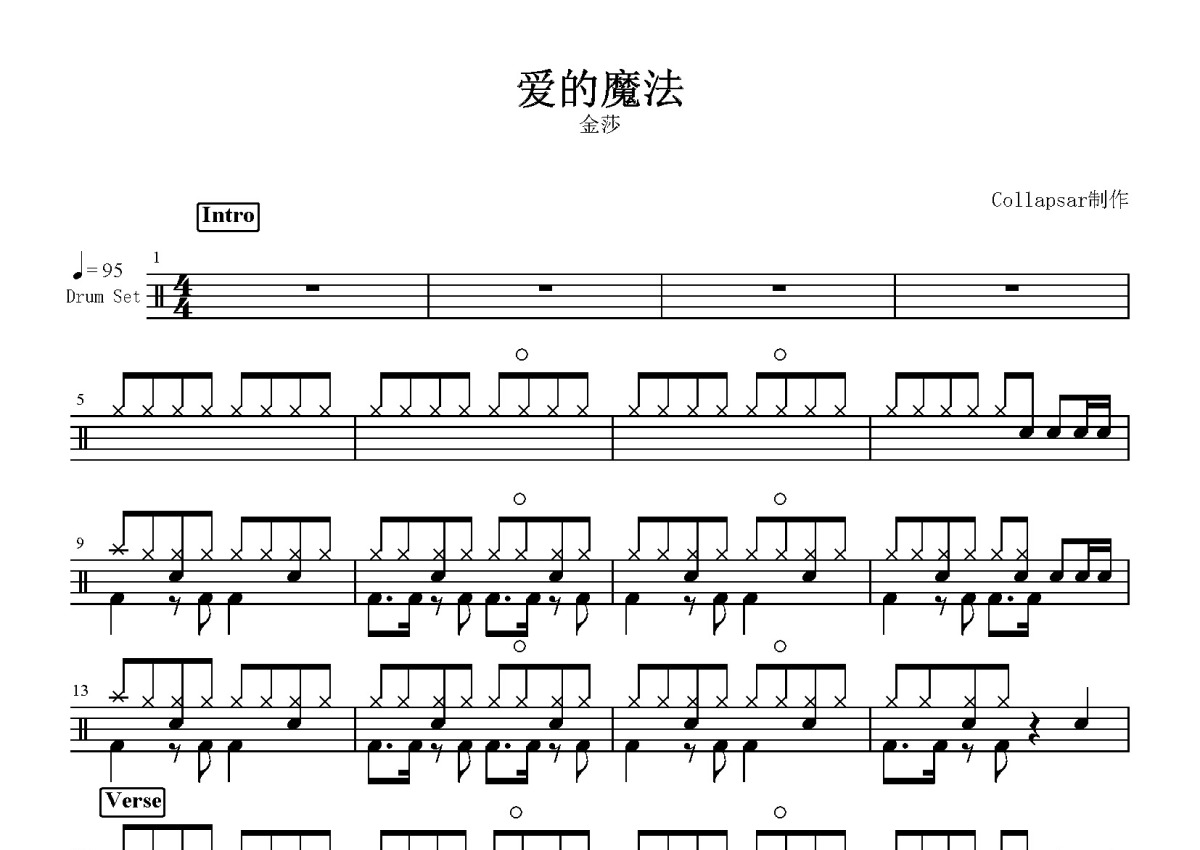 金莎《爱的魔法》鼓谱 - 架子鼓谱