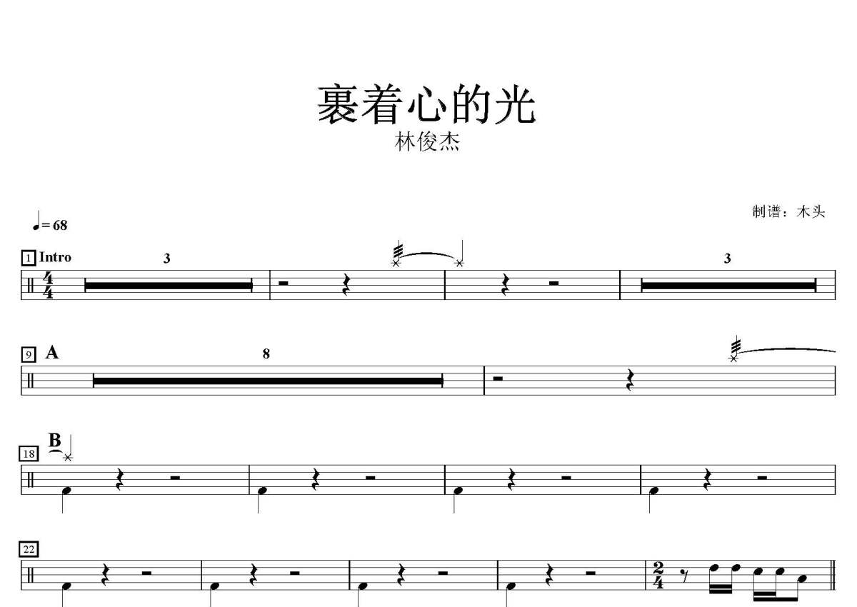 林俊杰《裹着心的光》鼓谱 - 架子鼓谱