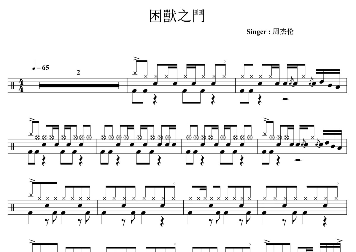 周杰伦《困兽之斗》鼓谱 - 架子鼓谱