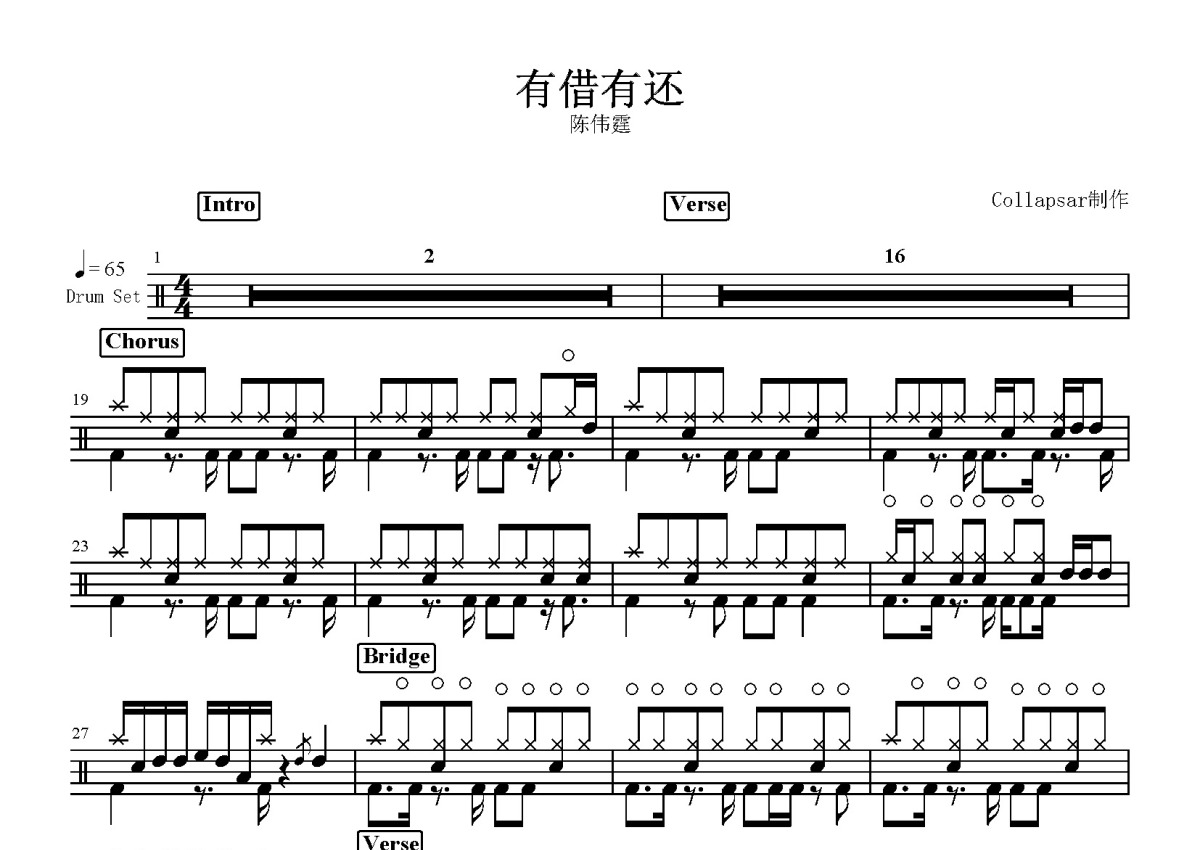 陈伟霆《有借有还》鼓谱 - 架子鼓谱