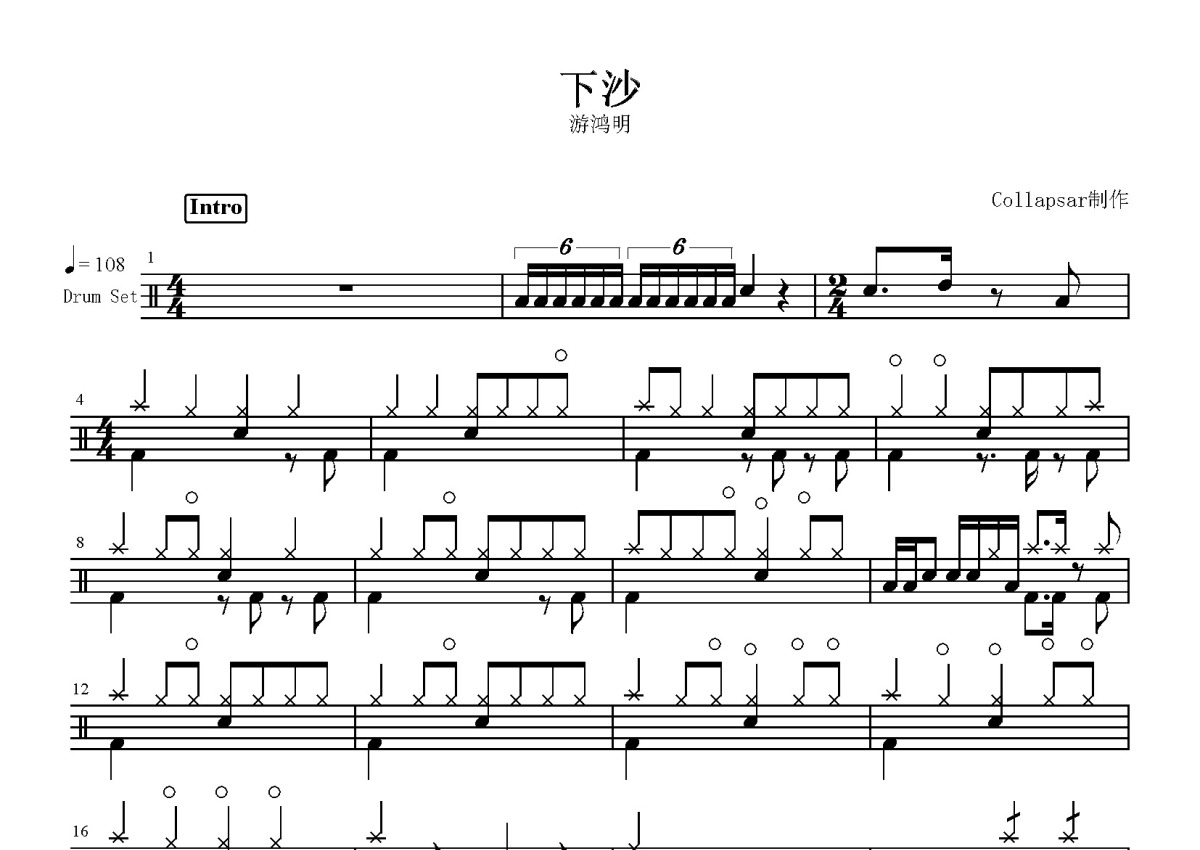 游鸿明《下沙》鼓谱 - 架子鼓谱