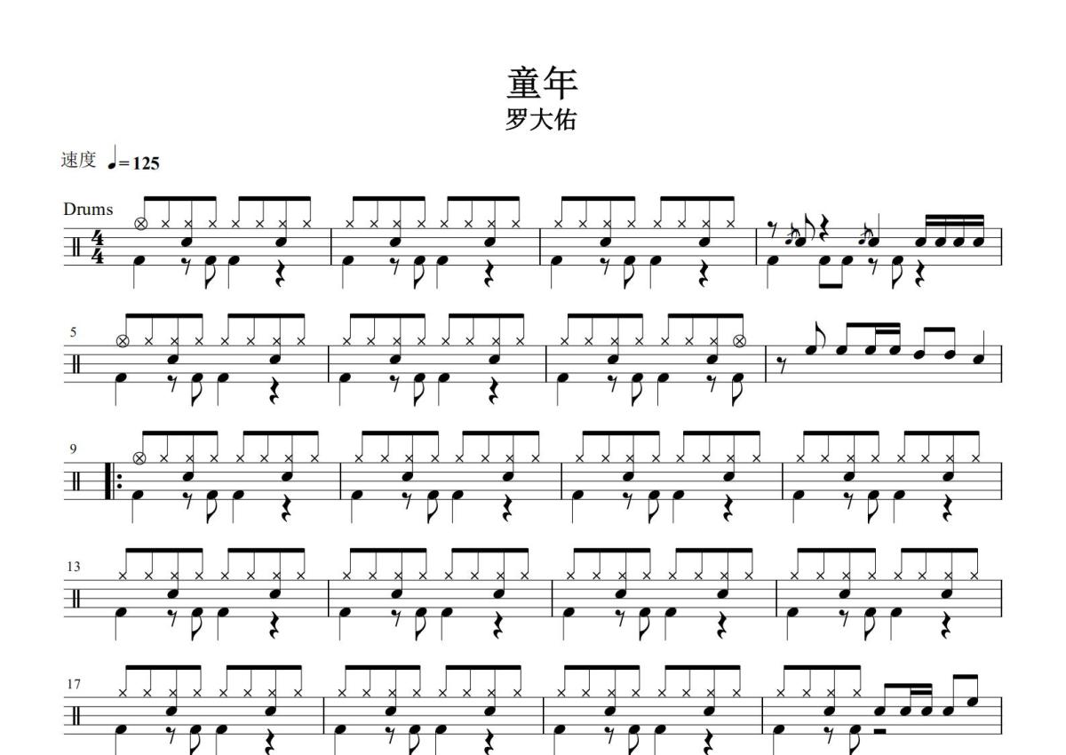 罗大佑《童年》鼓谱 - 架子鼓谱