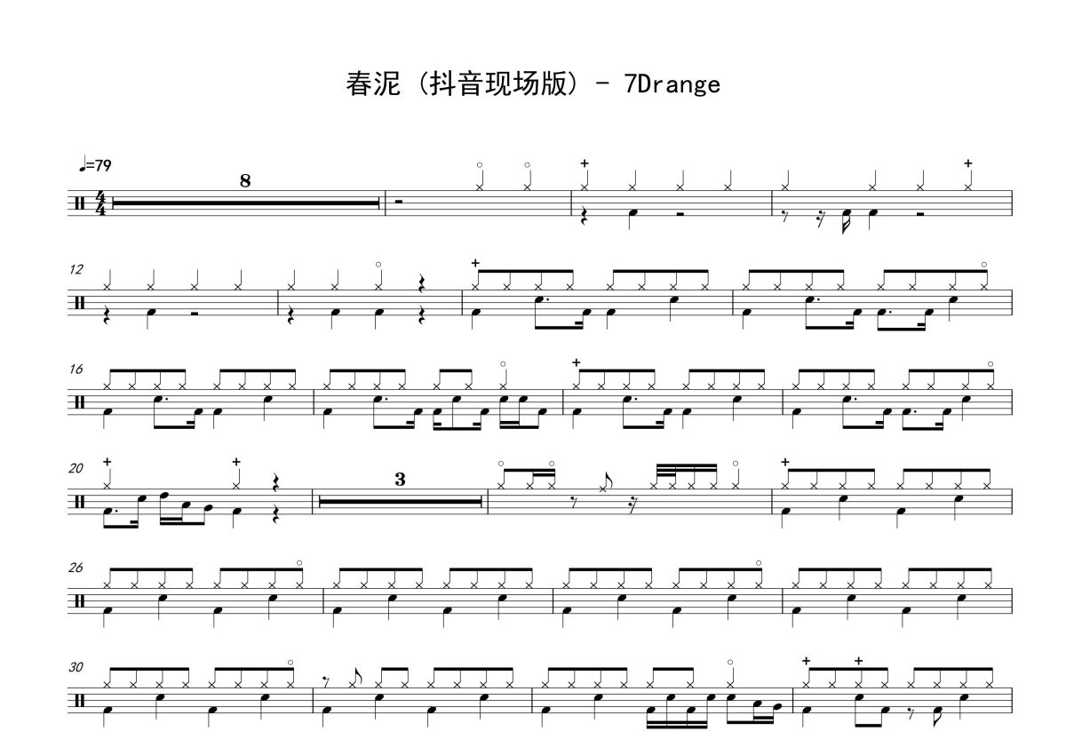 7Drange《春泥》鼓谱 - 架子鼓谱 - 抖音现场版