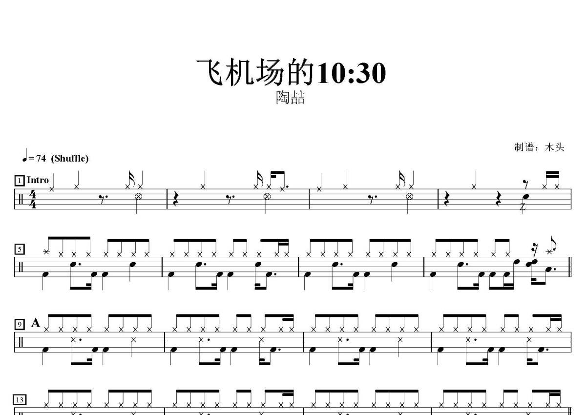 陶喆《飞机场的10:30》鼓谱 - 架子鼓谱