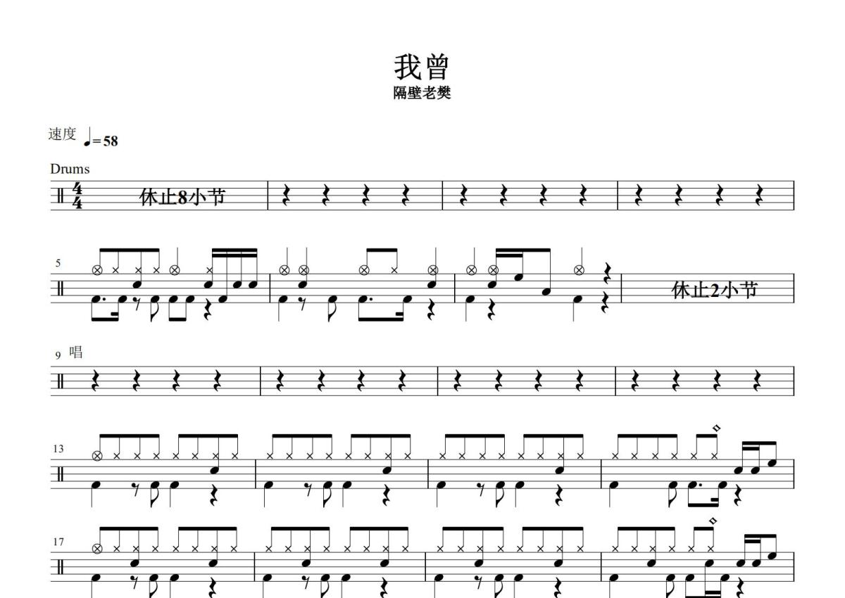 隔壁老樊《我曾》鼓谱 - 架子鼓谱