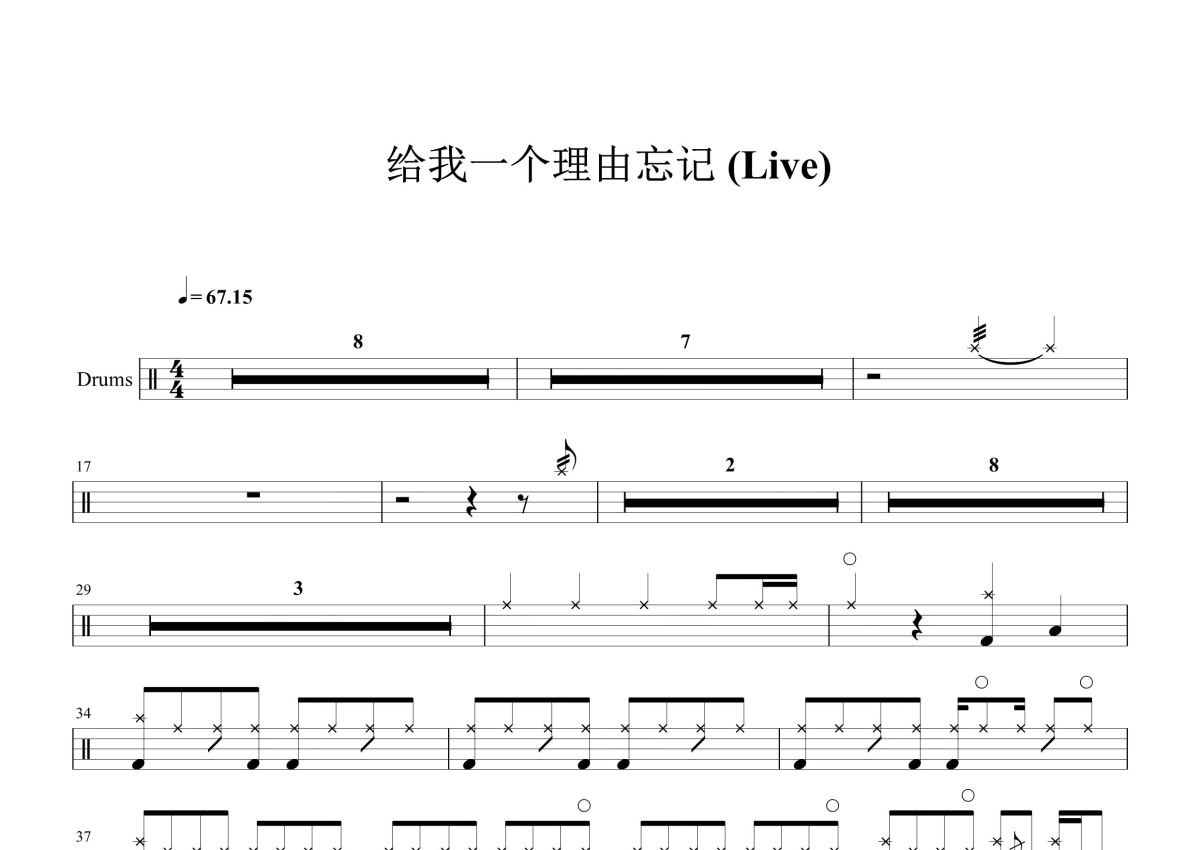 《给我一个理由忘记》是A-Lin演唱的一首歌曲,这份鼓谱共有两张高清图谱,图谱由 @打鼓谱 编配上传,图谱使用五线谱编配,使用这份给我一个理由忘记架子鼓谱,你将能够轻松地敲打出这首A-Lin的给我一个理由忘记,快来尝试吧。《给我一个理由忘记》A-Lin。
