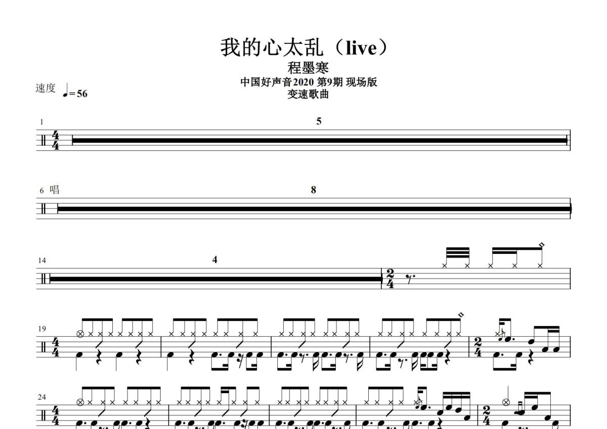 程墨寒《我的心太乱》鼓谱 - 架子鼓谱