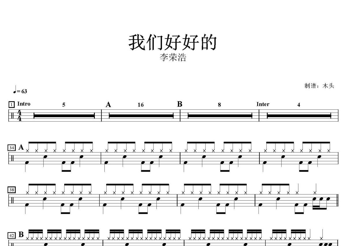 李荣浩《我们好好的》鼓谱 - 架子鼓谱