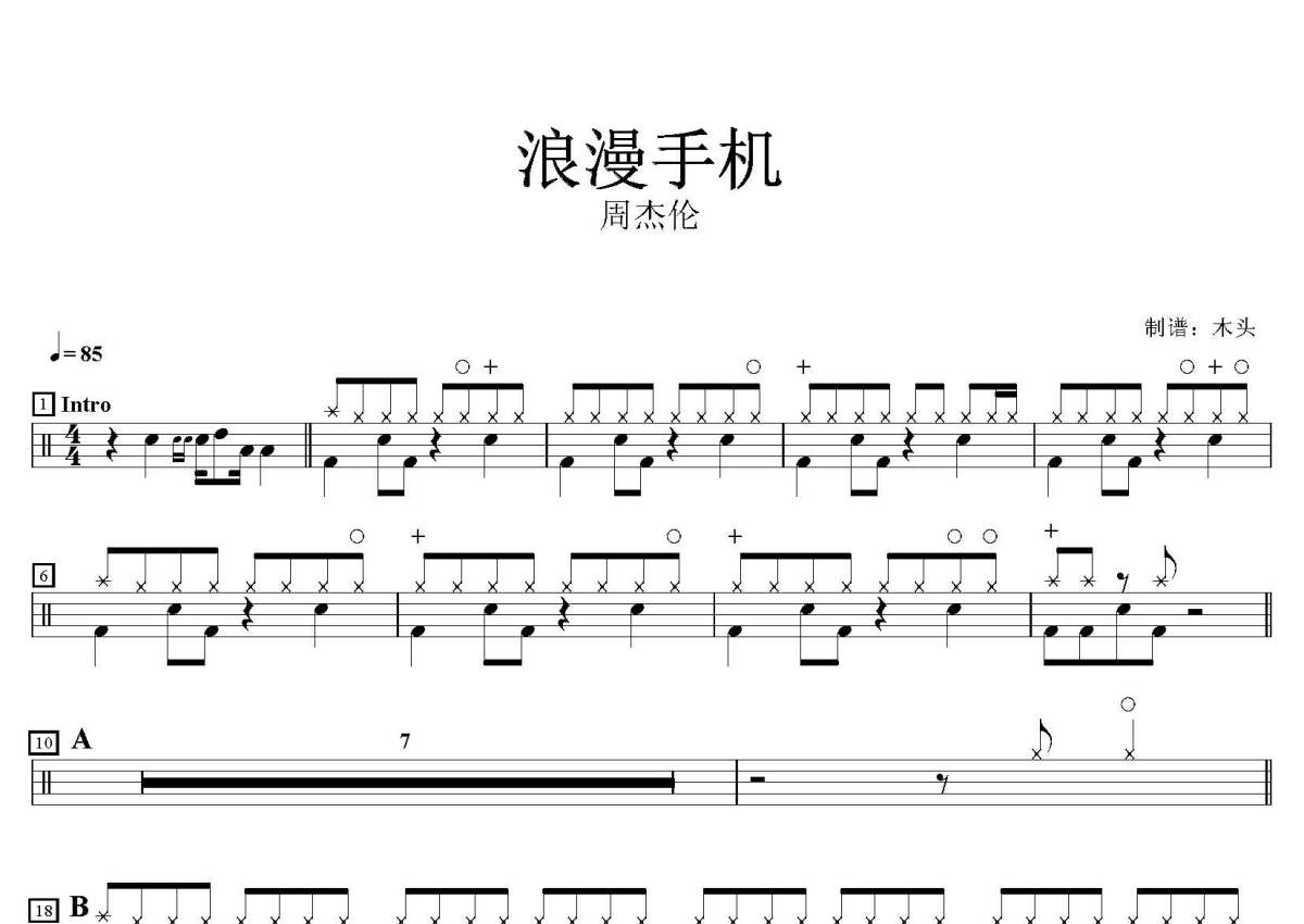 周杰伦《浪漫手机》鼓谱 - 架子鼓谱
