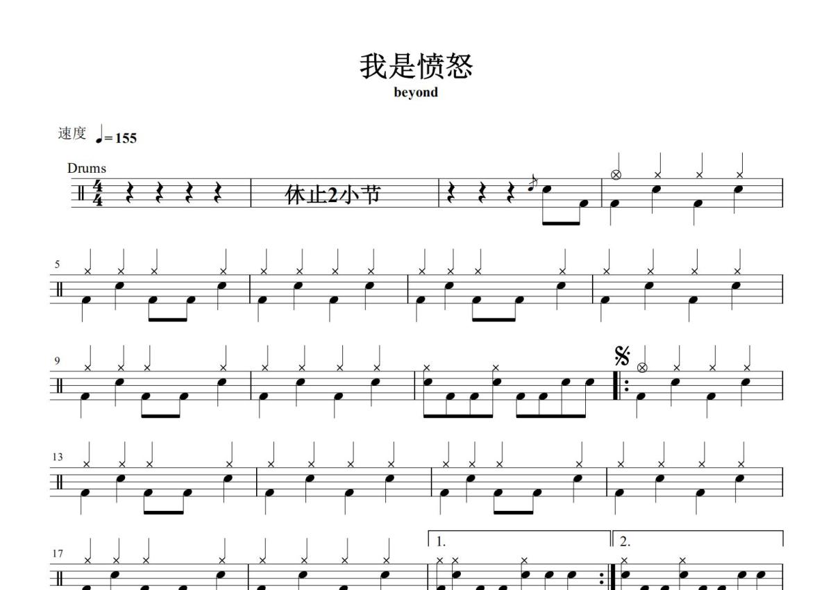 Beyond《我是愤怒》鼓谱 - 架子鼓谱