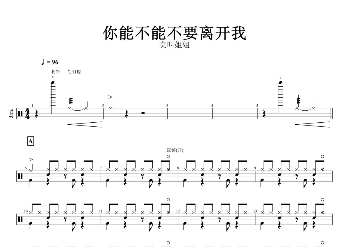 莫叫姐姐《你能不能不要离开我》鼓谱 - 架子鼓谱