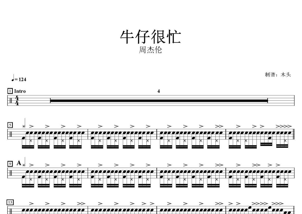 周杰伦《牛仔很忙》鼓谱 - 架子鼓谱