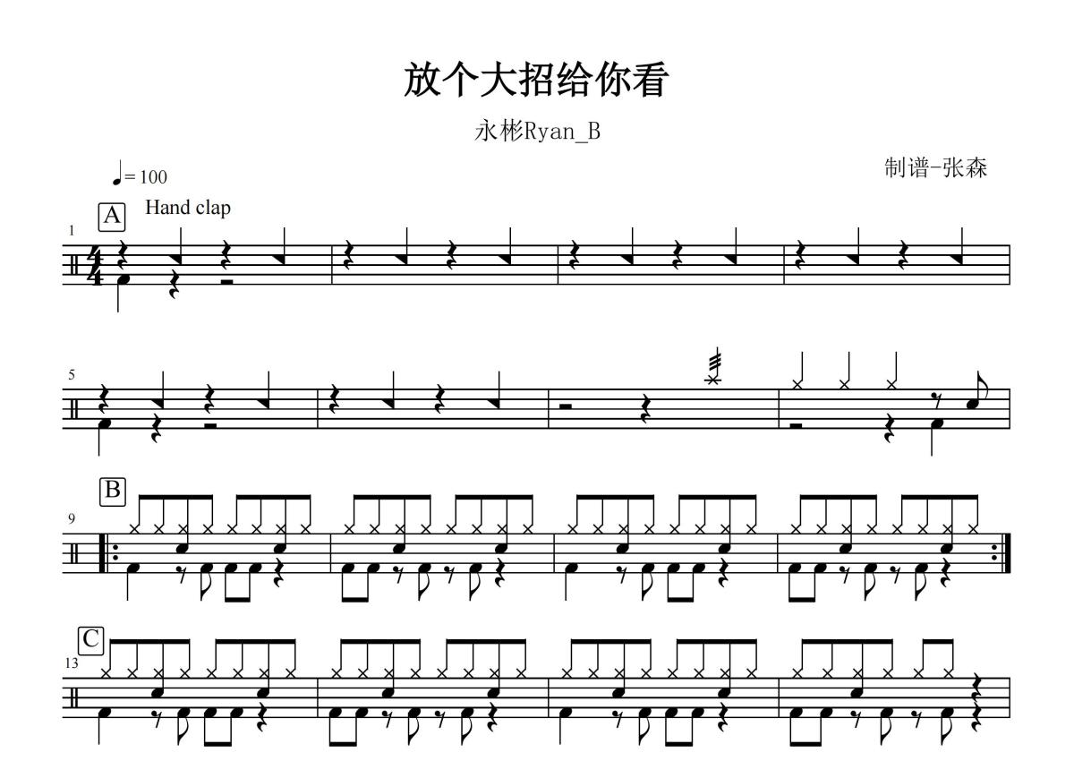 永彬Ryan.B《放个大招给你看》鼓谱 - 架子鼓谱