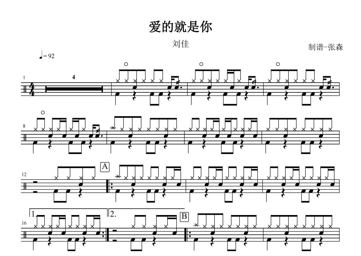 刘佳《爱的就是你》鼓谱 - 架子鼓谱
