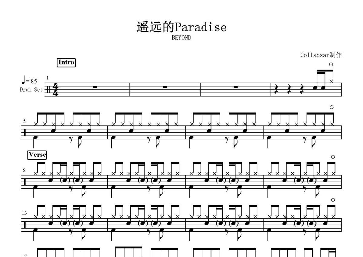 Beyond《遥远的Paradise》鼓谱 - 架子鼓谱