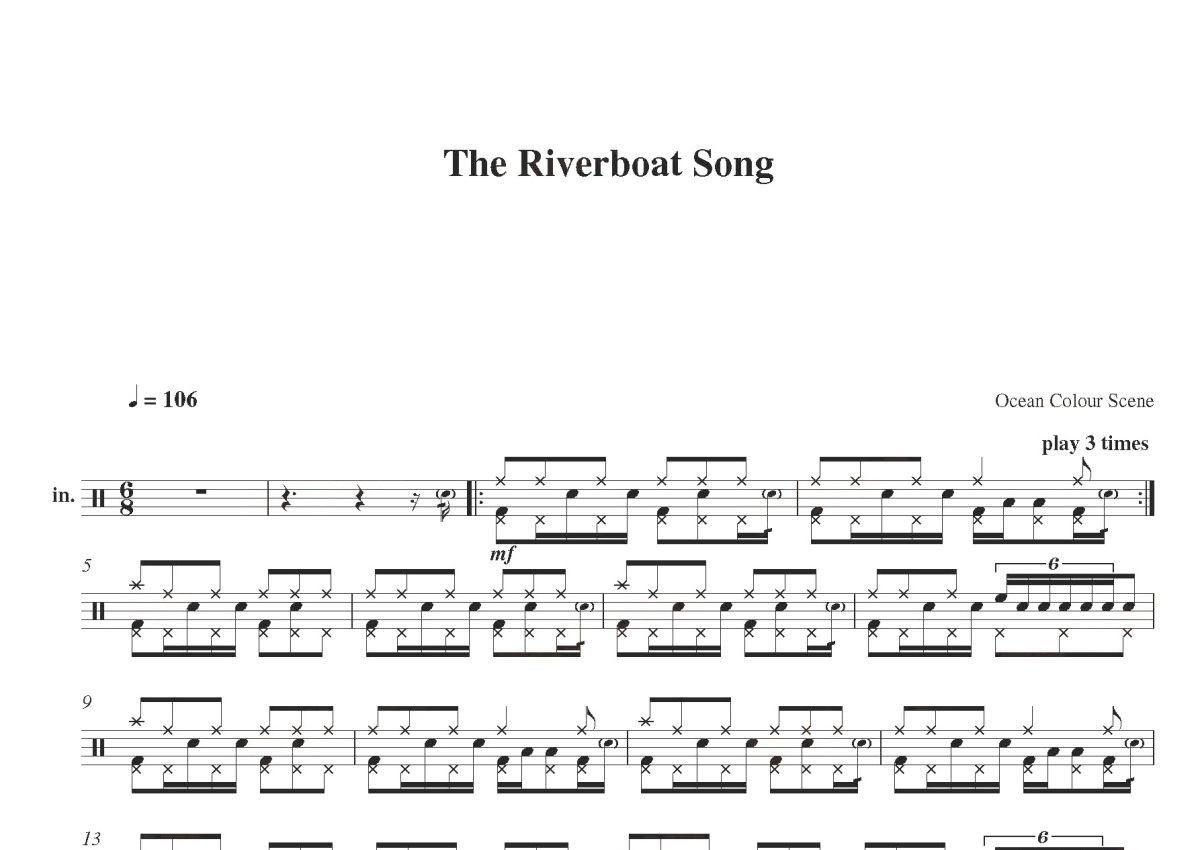 《the riverboat song》是Ocean Colour Scene演唱的一首歌曲,这份鼓谱共有四张高清图谱,图谱由 @打鼓谱 编配上传,图谱使用五线谱编配,使用这份the riverboat song架子鼓谱,你将能够轻松地敲打出这首Ocean Colour Scene的the riverboat song,快来尝试吧。《the riverboat song》现场版。 ocean colour scene成立于1989,自1992年发行同名专辑以来,10多年间共发行了9张录音室专辑,创作过不少经典曲目,却从来叫好不叫座,始终被定位为一只二线英伦摇滚乐队,如果单凭成绩来看,就给他们框上不入流乐队的标签,显然一叶障目。