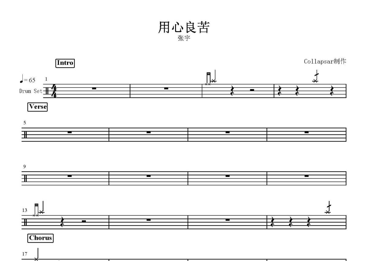 张宇《用心良苦》鼓谱 - 架子鼓谱