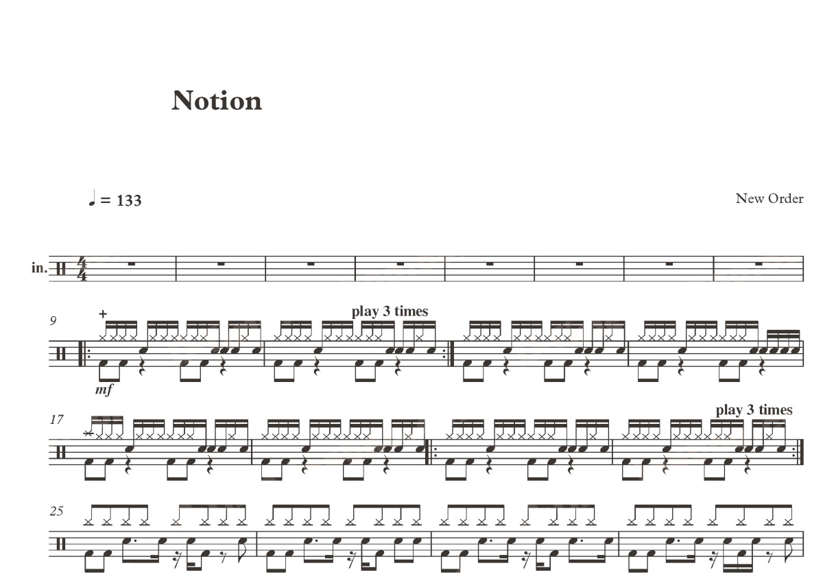 New Order《Notion》鼓谱 - 架子鼓谱